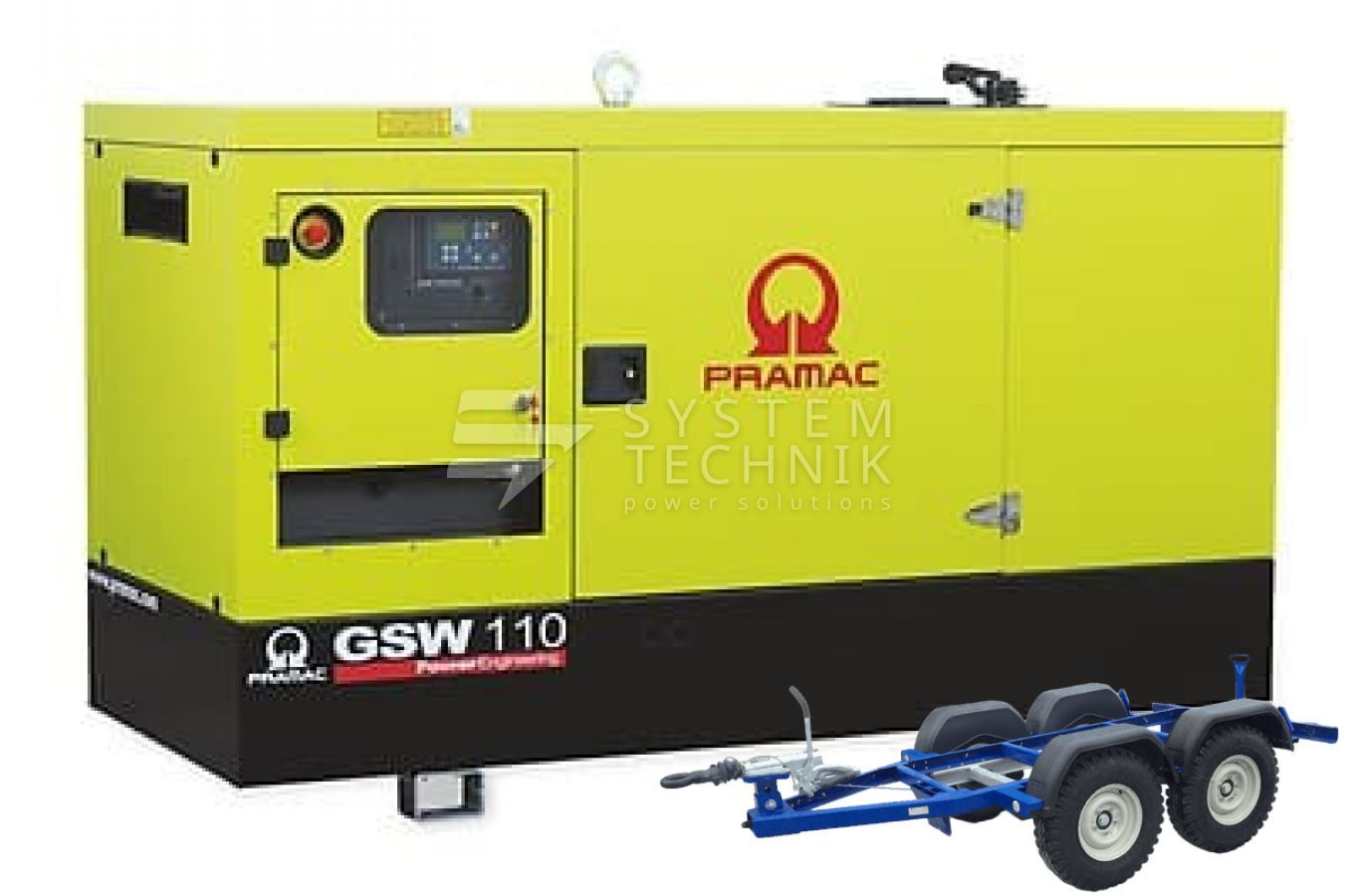 - Дизельный генератор Pramac GSW 110 V 380V В кожухе на прицепе