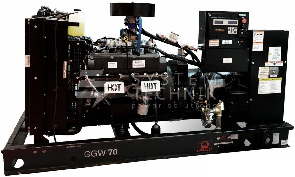 Трехфазная газовая электростанция в шумозащитном кожухе Pramac GGW70G с АВР изготовлена на базе двигателя Generac 6,8L с воздушным охлаждением. Генератор предназначен для организации автономного электроснабжения домов, небольших коммерческих, социальных и бытовых объектов.